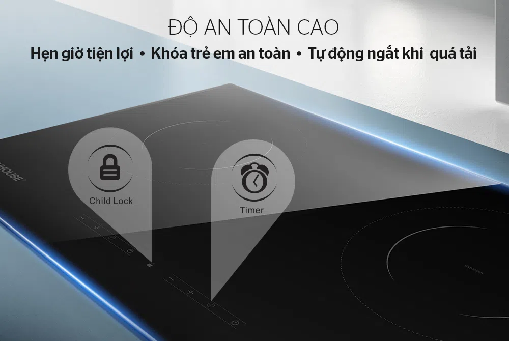SUNHOUSE SHB9005-EC được trang bị nhiều tính năng hiện đại như hẹn giờ, khóa trẻ em và tự động ngắt khi quá tải giúp đảm bảo an toàn cho người sử dụng và nâng cao độ bền cho bếp.
