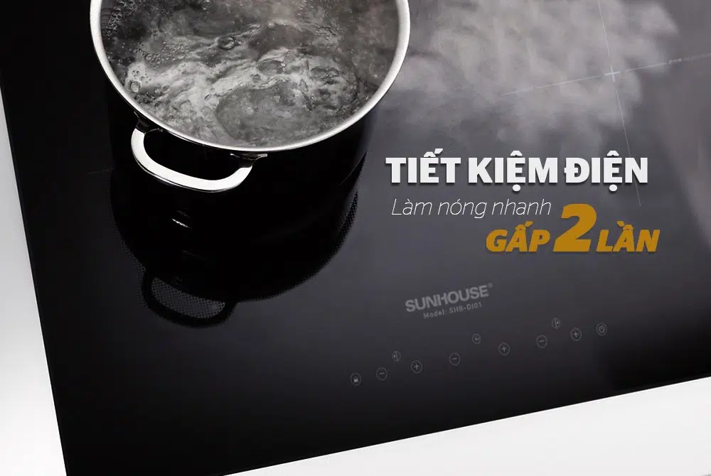 Bếp đôi điện từ SUNHOUSE SHB-DI01 với mâm từ được làm bằng 100% dây đồng siêu bền, giúp truyền nhiệt tốt và tăng tuổi thọ của bếp.