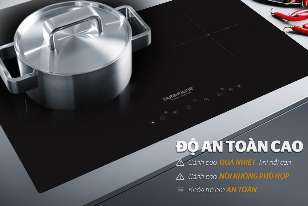 SUNHOUSE SHB-DI01 được trang bị nhiều tính năng hiện đại như hẹn giờ, khóa trẻ em và tự động ngắt khi quá tải giúp đảm bảo an toàn cho người sử dụng và nâng cao độ bền cho bếp.