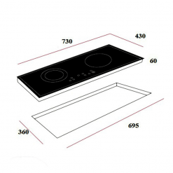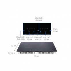 - 02 mặt bếp nấu: 01 bếp có vòng nhiệt Ø200 mm; 01 bếp có vòng nhiệt Ø 180 mm