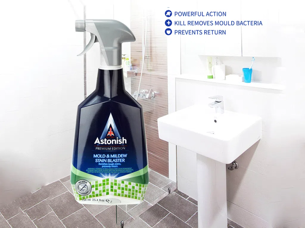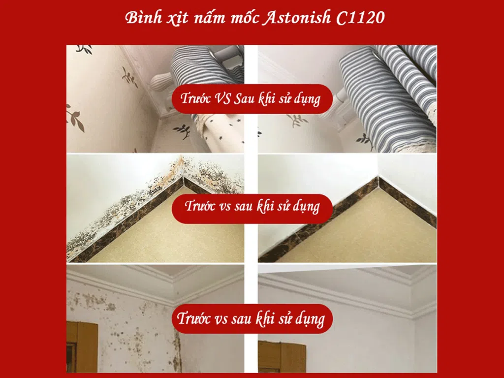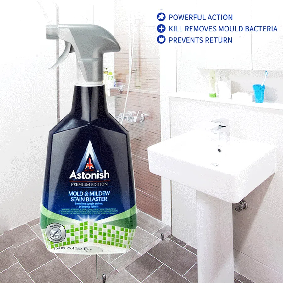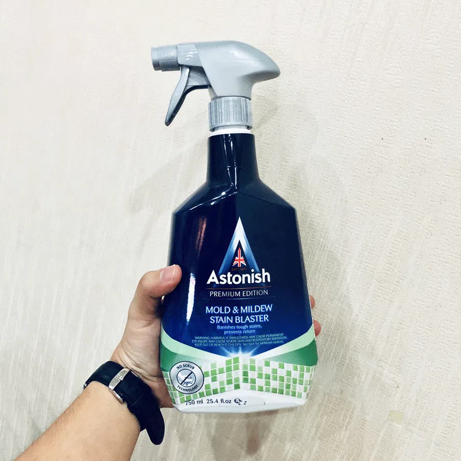 Bình xịt tẩy nấm mốc Astonish C1120. Sản xuất 100% tại Anh Quốc, công dụng tẩy cực mạnh, tiêu diệt hoàn toàn nấm mốc, đánh bay mọi vết ố bẩn do nấm mốc gây ra. Sản phẩm chuyên dụng để tẩy nấm mốc trên tường nhà, trong phòng tắm, nhà bếp, khung cửa, vách kính, roong cao su… và các vị trí ẩm thấp có xuất hiện nấm mốc, cáu bẩn.
