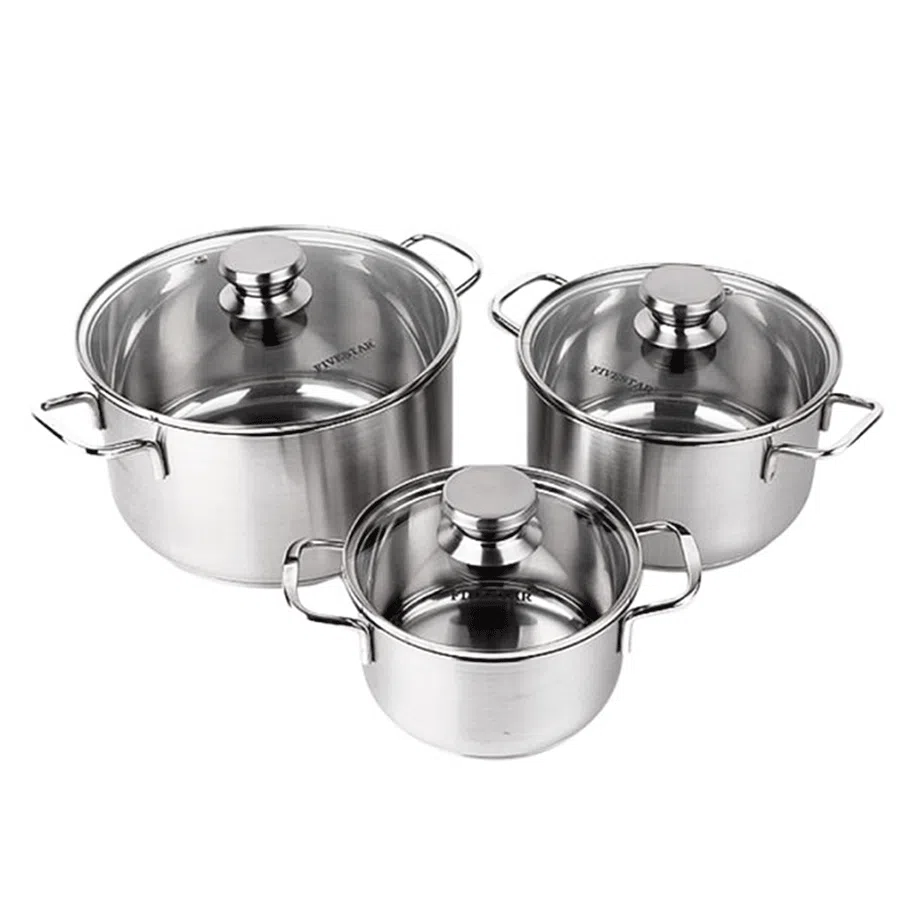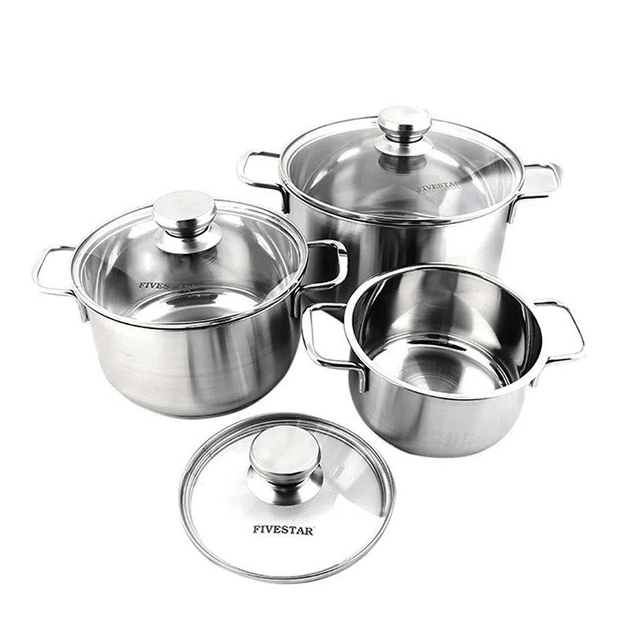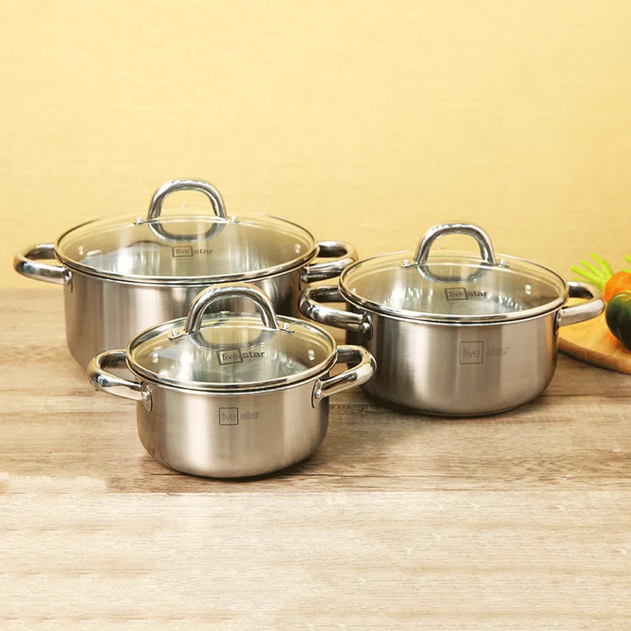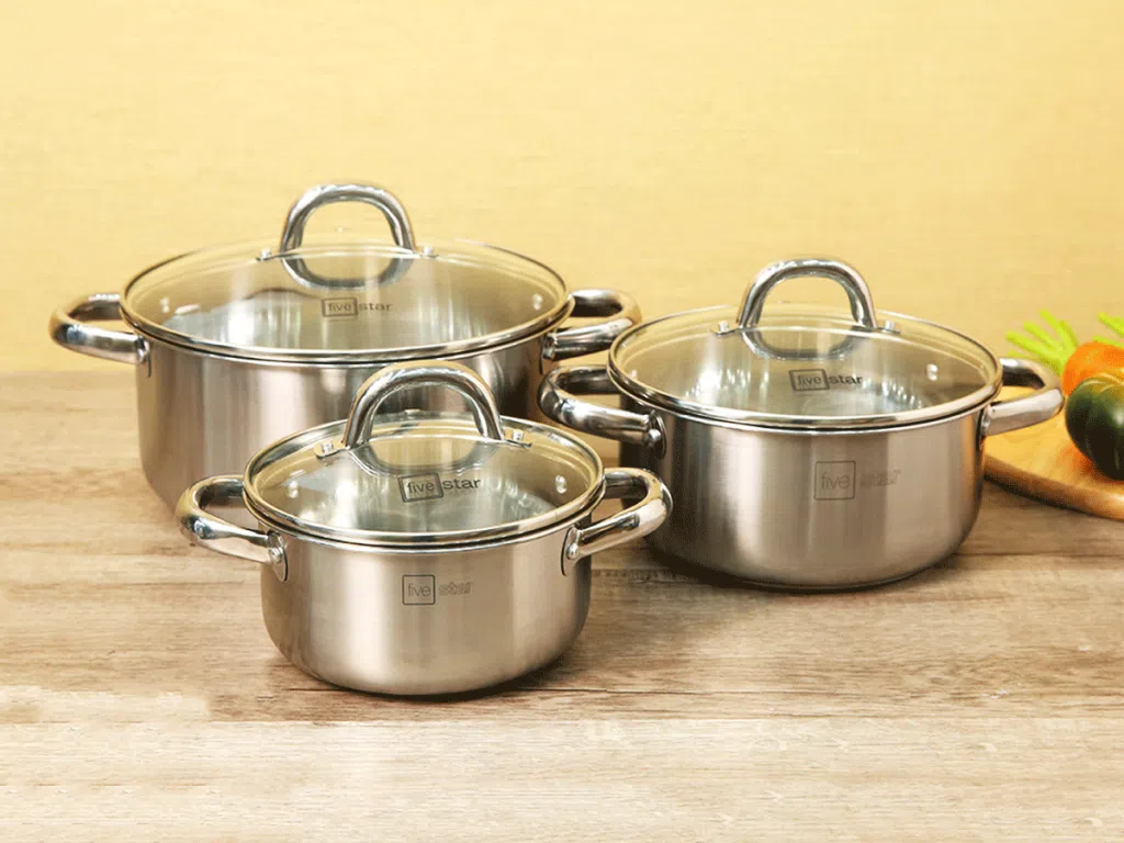 Bộ nồi inox 3 đáy cao cấp Five Stars 6 món sáng bóng, bền đẹp vừa giúp tiện lợi trong chế biến thức ăn, vừa giúp trang trí cho gian bếp nhà bạn thêm sang trọng.
