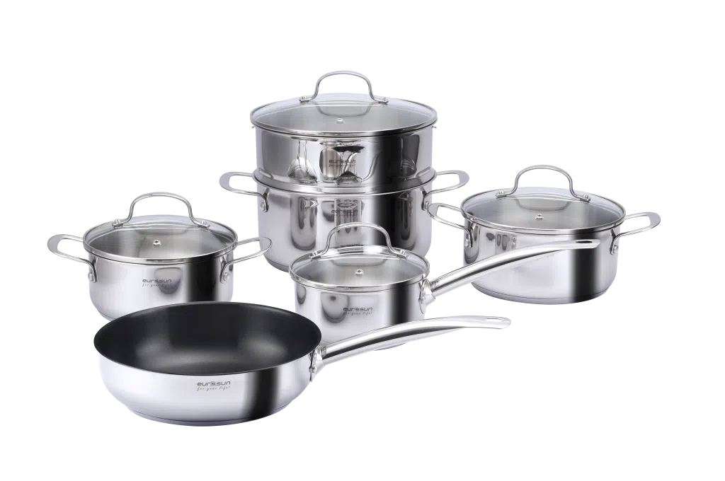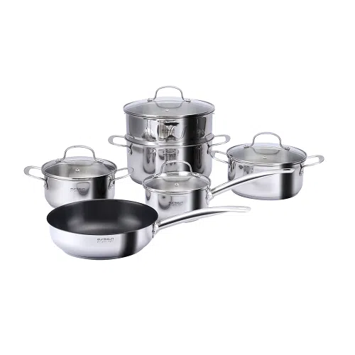 - Bộ nồi -Chảo cấu trúc 3 lớp đáy giúp truyền và giữ nhiệt tối ưu, tiết kiệm năng lượng
