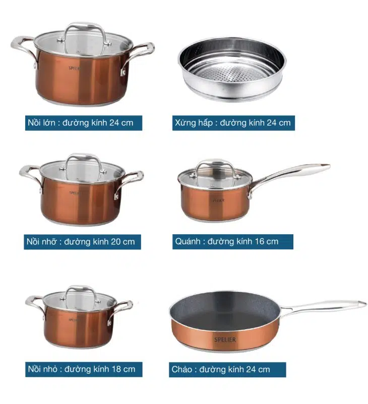 Thông số kỹ thuật bộ nồi chảo từ cao cấp