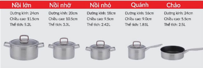 | Nồi nhỏ | R18cm*H9.5cm Thể tích: 2.42L |
