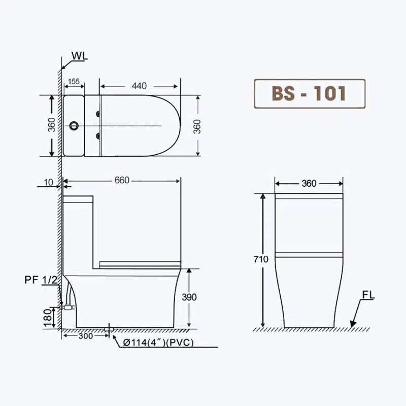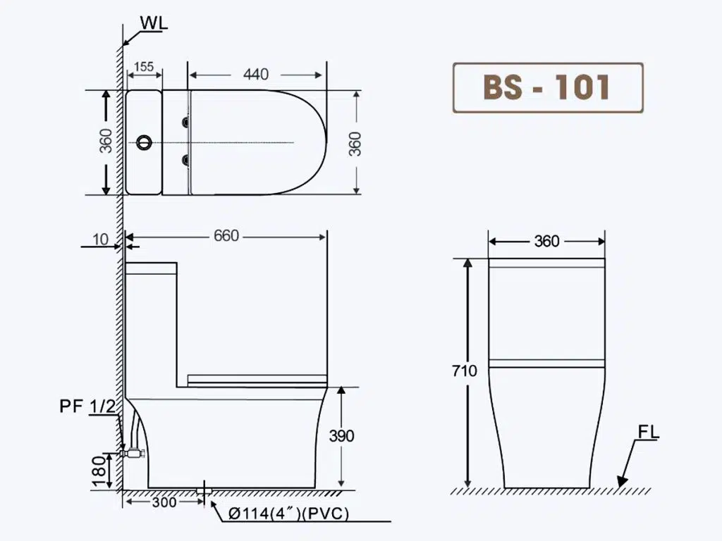 - Cửa xả: Kiểu Shipon ngăn mùi hôi một cách hiệu quả.
