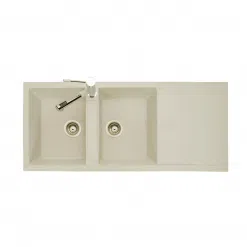 Chiếc bồn rửa chén 2 hộc 1 cánh bằng đá nhân tạo – Model CR12 được hãng Asia Dragon sản xuất bằng nguyên liệu cao cấp: Đá nhân tạo.