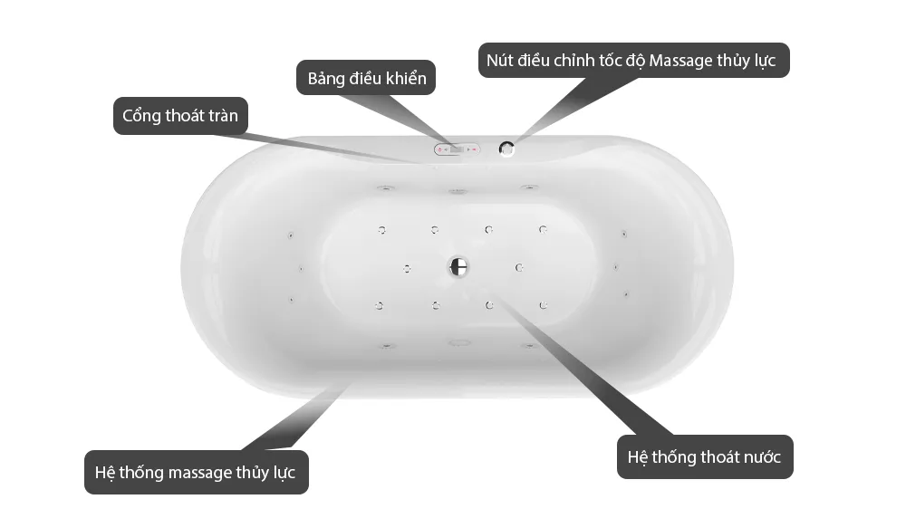 Bảng điều khiển được tích hợp ngay trên thành bồn tắm, người dùng dễ dàng điều khiển chế độ massage, hệ thống đèn LED, kết nối hệ thống âm thanh giải trí, mang đến sự tiện nghi hoàn hảo nhất.