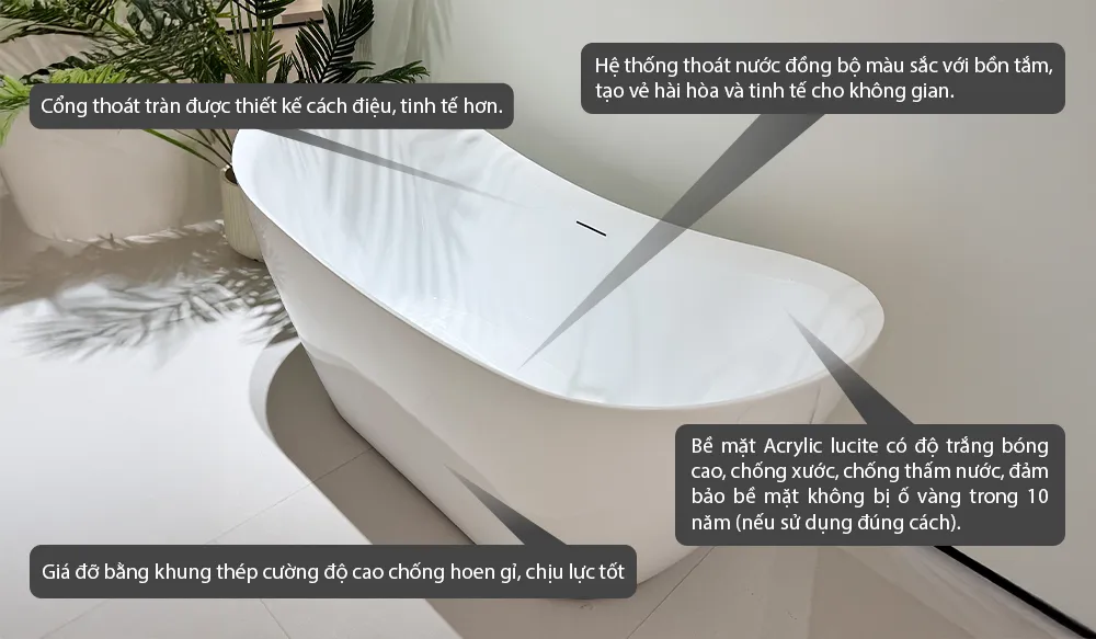 Sự kết hợp chất liệu Acrylic Lucite và lớp phủ Nano bên ngoài cùng công nghệ liên mạch Seamless, tạo nên bồn tắm Mowoen hoàn hảo có khả năng chống lại các yếu tố gây hại, an toàn cho người dùng và duy trì vẻ đẹp với thời gian.