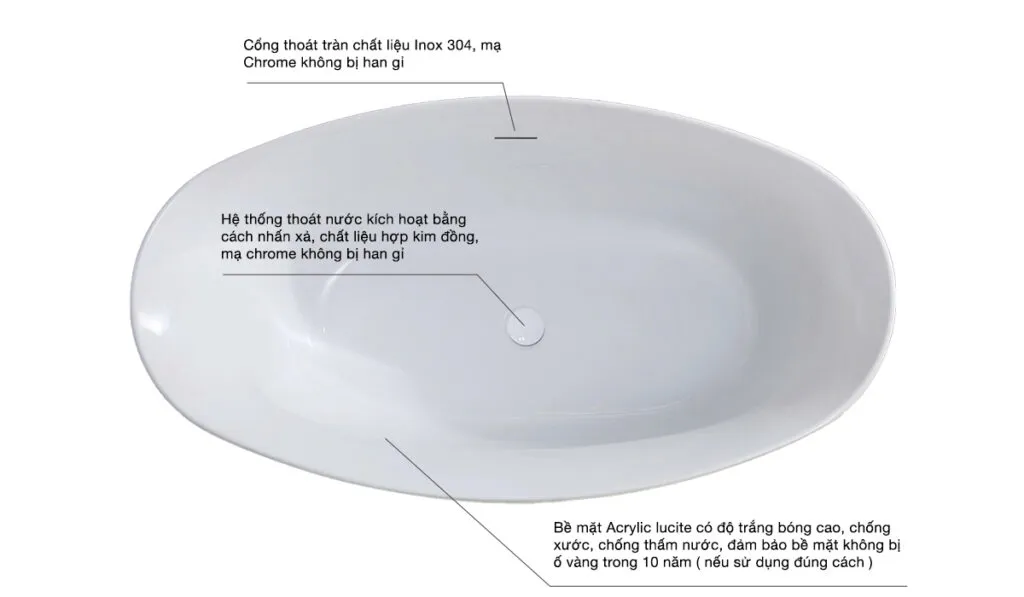 Nút nhấn xả nước được làm từ chất liệu hợp kim Đồng sơn tĩnh điện màu trắng đồng màu cùng bồn tắm. Để xả nước nhanh chóng, chỉ cần thao tác đơn giản bằng cách nhấn xả.