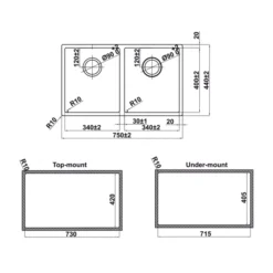 | Kích thước chậu:750 x 440R mm | |