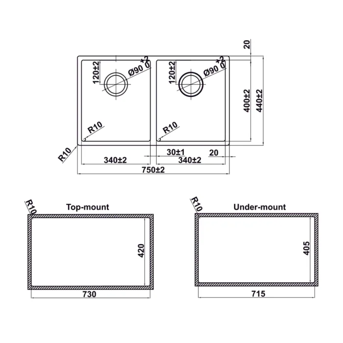 | Chậu bếp Inox Satin R10 | |