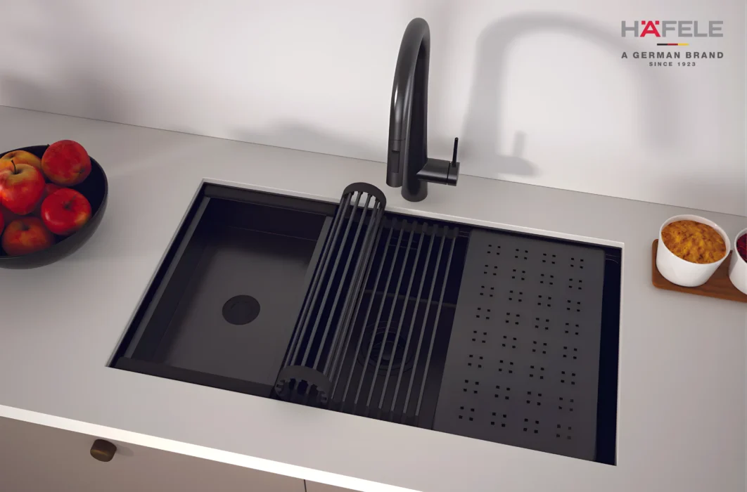 Độ dày inox 1.2 mm kết hợp với lòng chậu sâu 220 mm giúp người dùng rửa được nồi chảo lớn mà không lo tràn nước ra ngoài. Dù sử dụng nhiều năm, chậu vẫn giữ nguyên độ sáng và form dáng ban đầu. Đây là một chi tiết nhỏ nhưng thể hiện rõ đẳng cấp và sự tinh tế trong thiết kế chuẩn Đức mà Hafele luôn hướng đến.