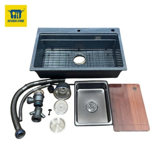 - Chậu rửa chén đá 1 hộc rộng rãi phục vụ nhu cầu rửa rau củ, rửa hoa quả, rửa bát đĩa thật tiện lợi.