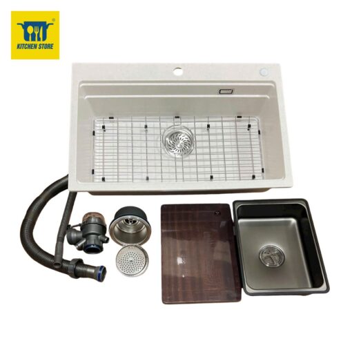 - Chậu rửa chén đá 1 hộc rộng rãi phục vụ nhu cầu rửa rau củ, rửa hoa quả, rửa bát đĩa thật tiện lợi.