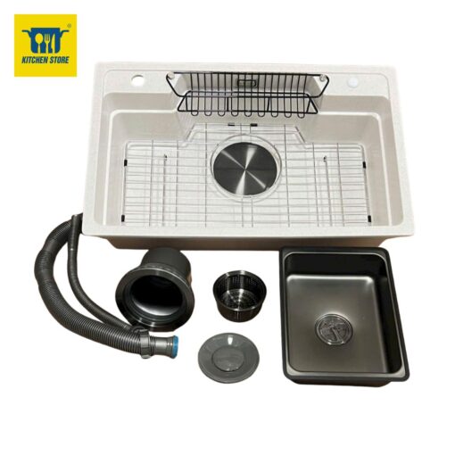 - Chậu rửa chén đá 1 hộc rộng rãi phục vụ nhu cầu rửa rau củ, rửa hoa quả, rửa bát đĩa thật tiện lợi.