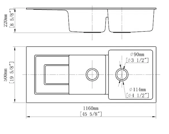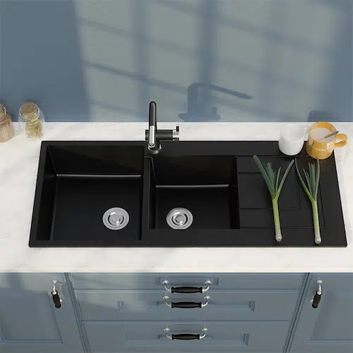 - Chậu rửa chén đá 2 hộc 1 cánh rộng rãi phục vụ nhu cầu rửa rau củ, rửa hoa quả, rửa bát đĩa thật tiện lợi.