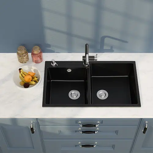 - Chậu rửa chén đá 2 hộc rộng rãi phục vụ nhu cầu rửa rau củ, rửa hoa quả, rửa bát đĩa thật tiện lợi.