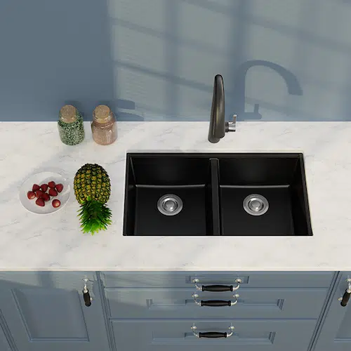 - Chậu rửa chén đá 2 hộc rộng rãi phục vụ nhu cầu rửa rau củ, rửa hoa quả, rửa bát đĩa thật tiện lợi.