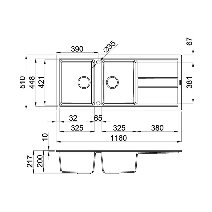 - Kích thước: W1160 x D510 x H217mm