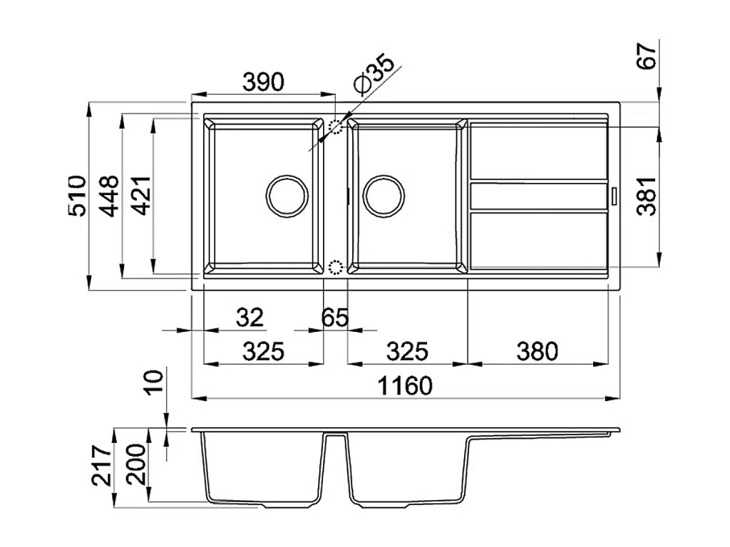 - Kích thước: W1160 x D510 x H217mm