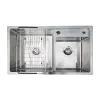 - Mỗi ngăn rửa đều có rổ lọc ở lối thoát nước, giúp bạn ngăn chặn thức ăn thừa, chất cặn làm tắc đường dẫn nước thải.