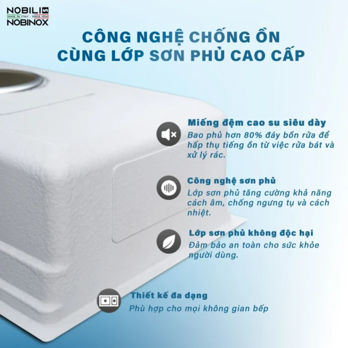 Đây không chỉ là một chất liệu, mà là một cam kết về độ tin cậy và tuổi thọ, biến chậu rửa Nobinox thành một khoản đầu tư trọn đời cho căn bếp của bạn.