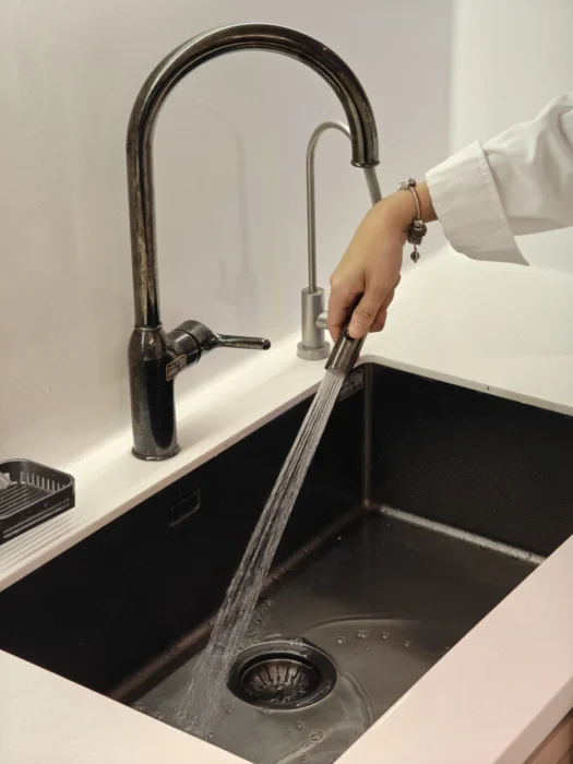 Nước rửa bát TASCA CANOVA NT600B sở hữu vẻ ngoài nổi bật và đậm cá tính nhờ lớp phủ Gun Metal (Đen PVD) cao cấp. Đây không đơn thuần là một lớp sơn, mà là một quy trình công nghệ Phủ Hơi Vật Lý (Lắng đọng hơi vật lý) tiên tiến, phủ một lớp hợp kim siêu tinh, siêu cứng lên bề mặt thép không gỉ AISI 304.