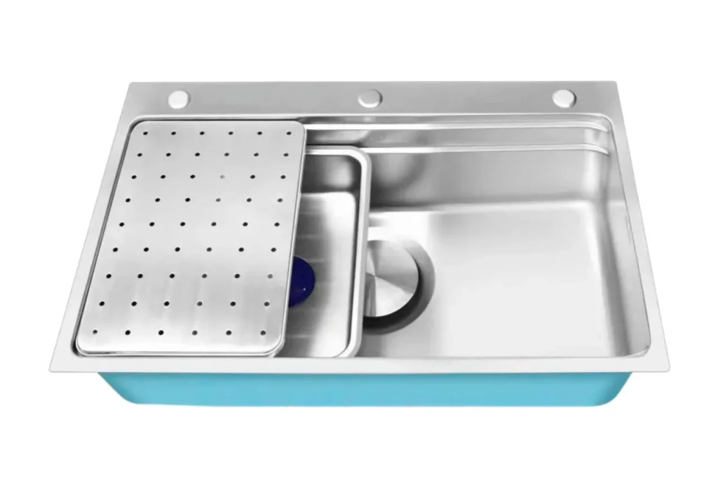 - Khay hứng nước inox nhỏ đi kèm chậu tiện lợi cho việc hứng nước, úp chén bát nhỏ, để ráo nước rau củ quả,…