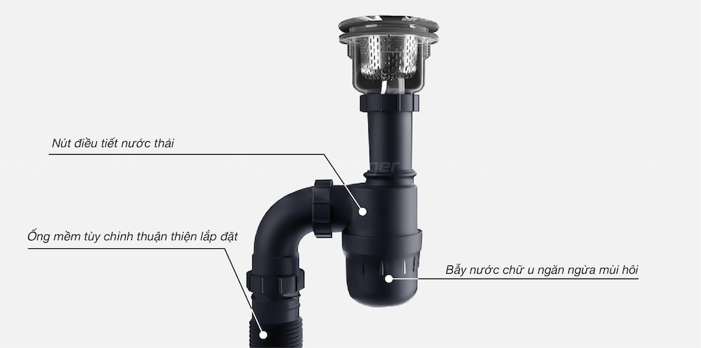 Được sản xuất độc quyền sử dụng chất liệu PVC chịu nhiệt tốt, có lưu lượng thoát nước lớn. Đồng thời, với cấu tạo ngăn mùi, ngăn nước trào ngược, chống côn trùng, siphon Kluger giữ cho không gian bếp luôn thông thoáng và sạch sẽ.