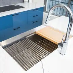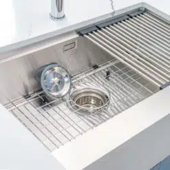 - Dòng chậu hạ bậc – tích hợp công năng: thớt gỗ, rollmat, colander, bottom grid