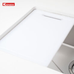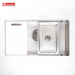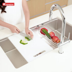 - Tích hợp phụ kiện thông minh: Thớt nhựa, rổ phụ, giá úp bát, siphon.