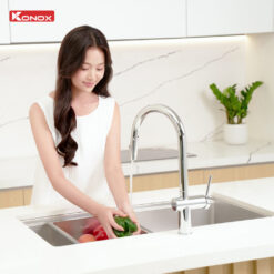 Với model Tari 8748SM, Konox ra mắt công nghệ xử lý bề mặt trơn mịn sở hữu độ bền, khả năng chống ăn mòn lý tưởng, an toàn với sức khỏe và 100% có thể tái chế, giữ vững độ bền và thẩm mỹ theo thời gian. Tari 8748SM với thiết kế vuông góc tinh tế sắc bén tạo điểm nhấn cho không gian bếp.
