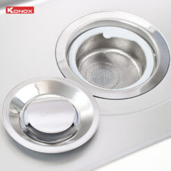 - Bát rác kích thước lớn 185mm, với 3 lớp lọc chống tắc, phù hợp với thói quen sử dụng của người Việt.