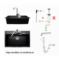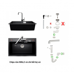 Chậu rửa chén bằng đá Granite WAL2 của Carysil đã bao gồm đầy đủ bộ xả (xiphong) phía dưới. Khách hàng sẽ không phải lo lắng mua thêm bộ xả khi mua mới chậu.