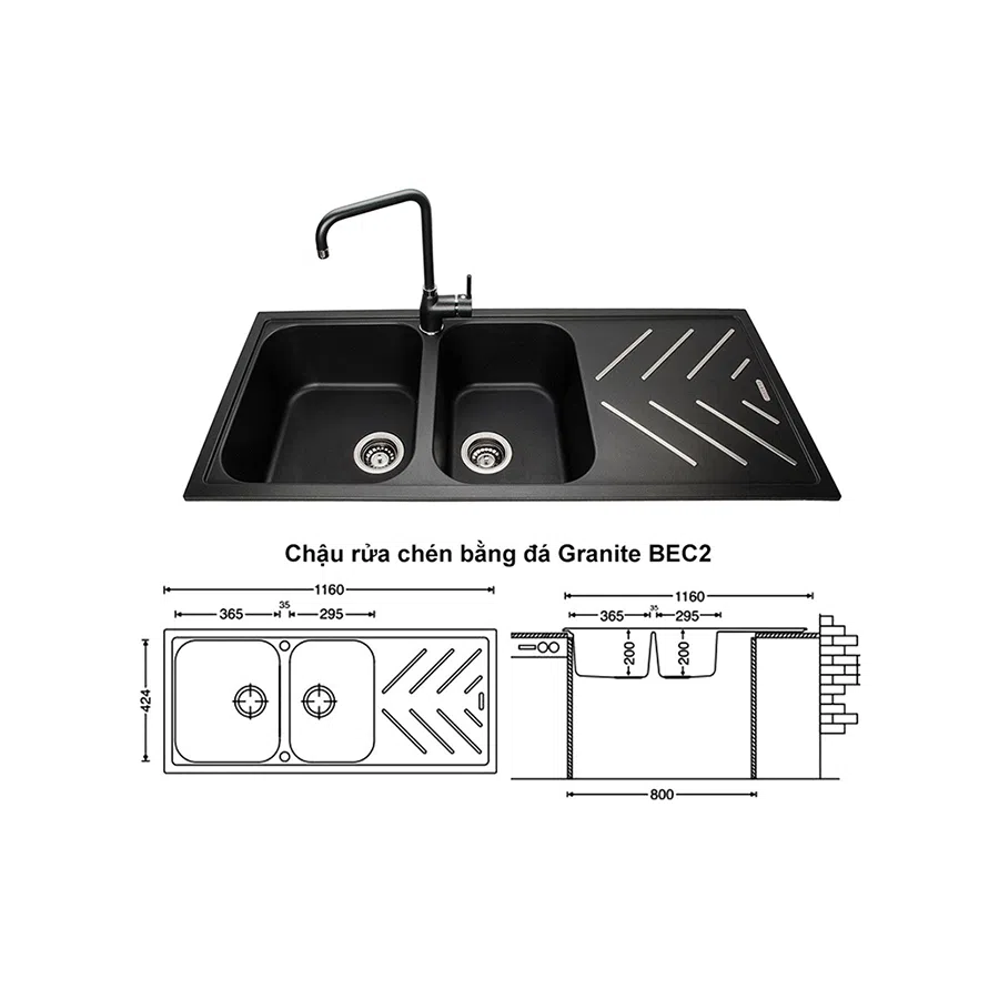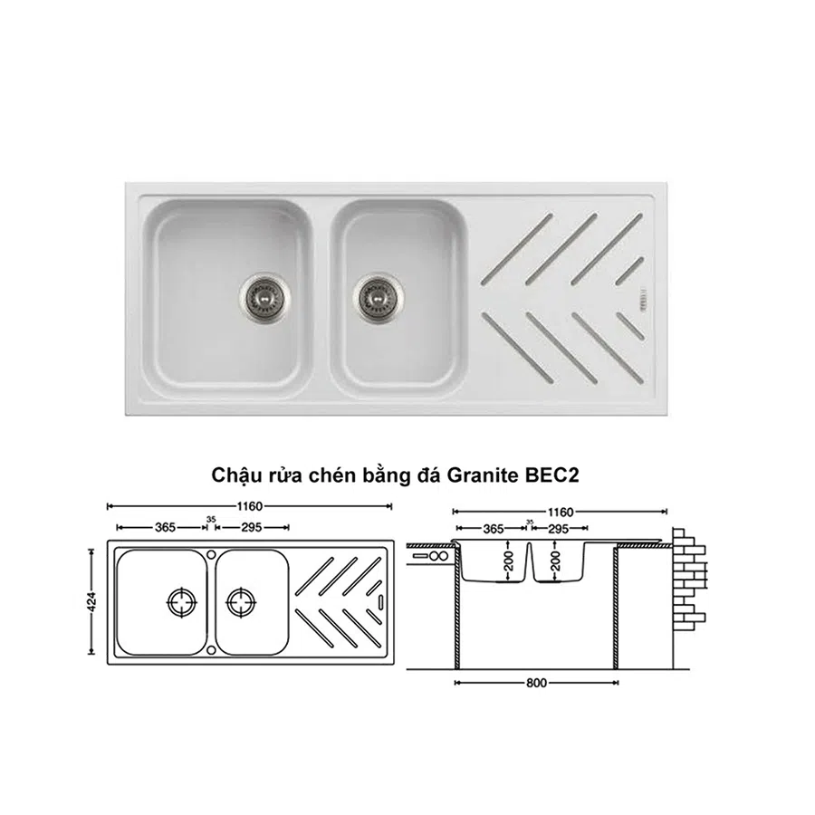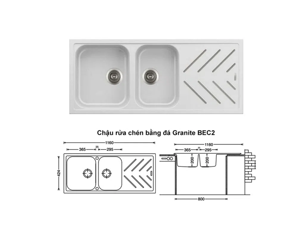 Chi tiết kích thước chậu rửa chén Carysil BEC2