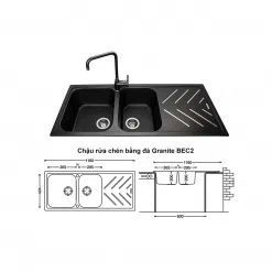 Chậu rửa chén bằng đá Granite BEC2 của Carysil đã bao gồm đầy đủ bộ xả (xiphong) phía dưới. Khách hàng sẽ không phải lo lắng mua thêm bộ xả khi mua mới chậu.