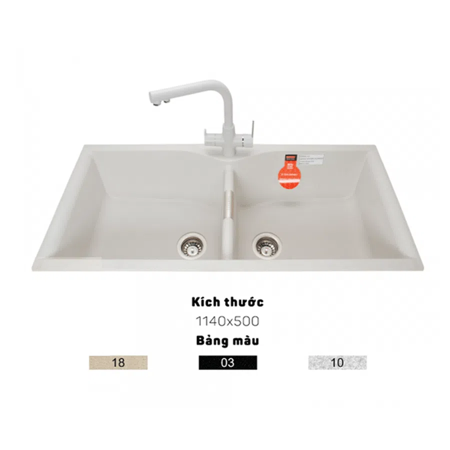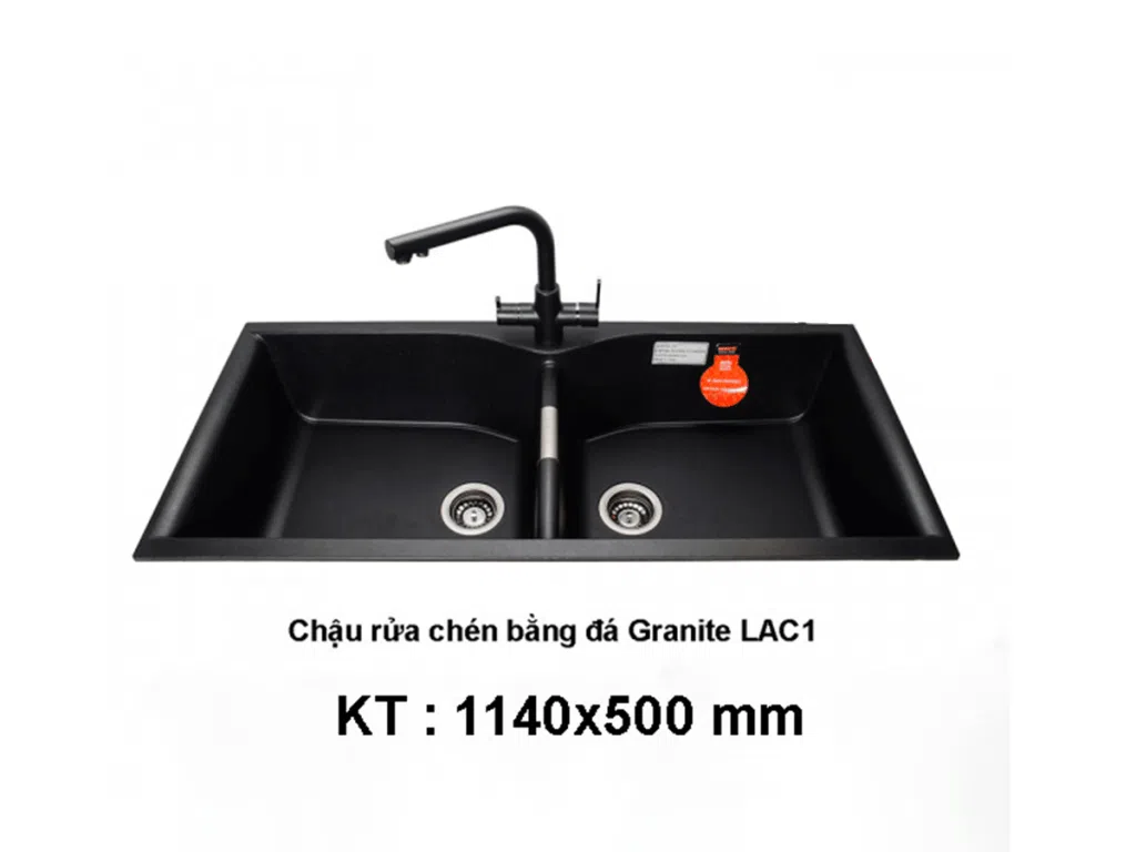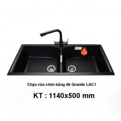 Chậu rửa chén bằng đá granite LAC1 là mã chậu đá có kích thước 2 hố loại lớn nhất của Carysil, phù hợp cho các thiết kế bếp loại lớn hay gia chủ thích sự thoải mái nhất trong việc sử dụng chậu rửa trong bếp.