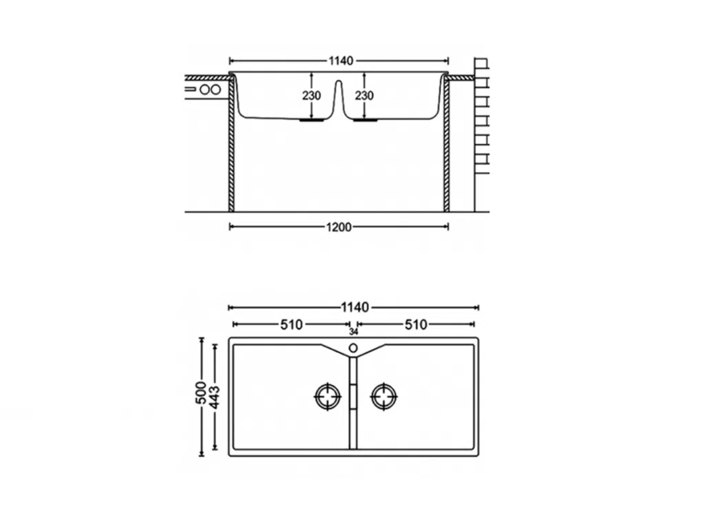 - Kích thước cắt đá: 1120x480mm (DxR)