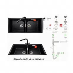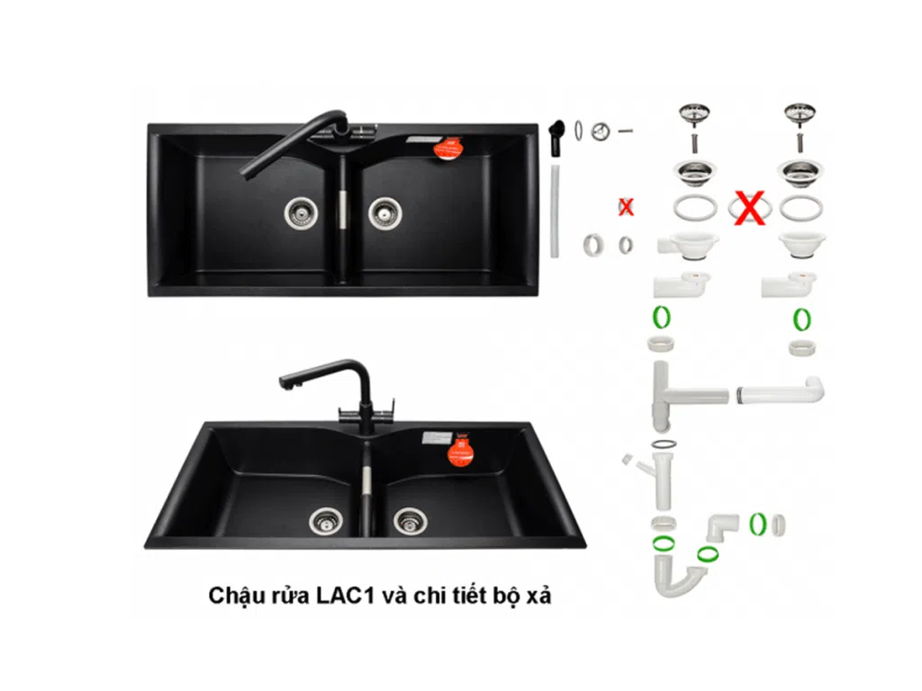 Chậu rửa chén bằng đá Granite LAC1 của Carysil đã bao gồm đầy đủ bộ xả (xiphong) phía dưới. Khách hàng sẽ không phải lo lắng mua thêm bộ xả khi mua mới chậu.