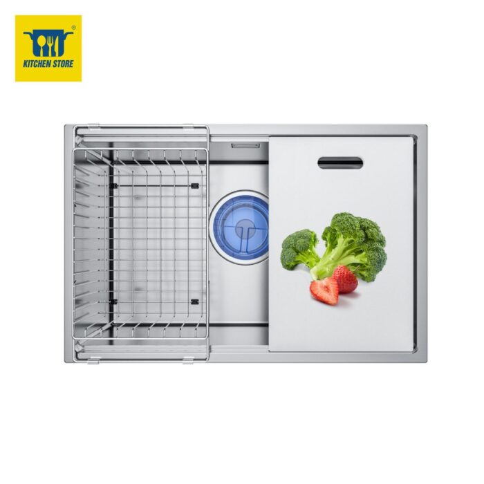 Toàn bộ chậu được làm từ Inox SUS304 18/8, loại thép không gỉ cao cấp chuyên dùng cho thiết bị nhà bếp. Lớp bề mặt xử lý Brushed SATIN chống ăn mòn giúp chậu luôn sáng bóng, không bị xỉn màu theo thời gian – kể cả trong môi trường ẩm ướt.