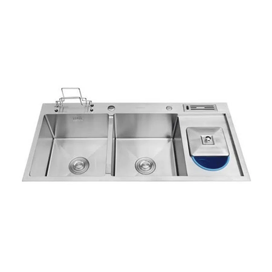 Chậu có kích thước 900 x 450mm, chiều sâu lòng chậu 230mm, chiều dầy thành chậu 2mm. Thiết kế 02 hộc rộng rãi dễ dàng sử dụng. Đáy chậu còn thiết kế tránh ngưng tụ nước, không đọng nước giúp thoải mái trong công tác dọn rửa.