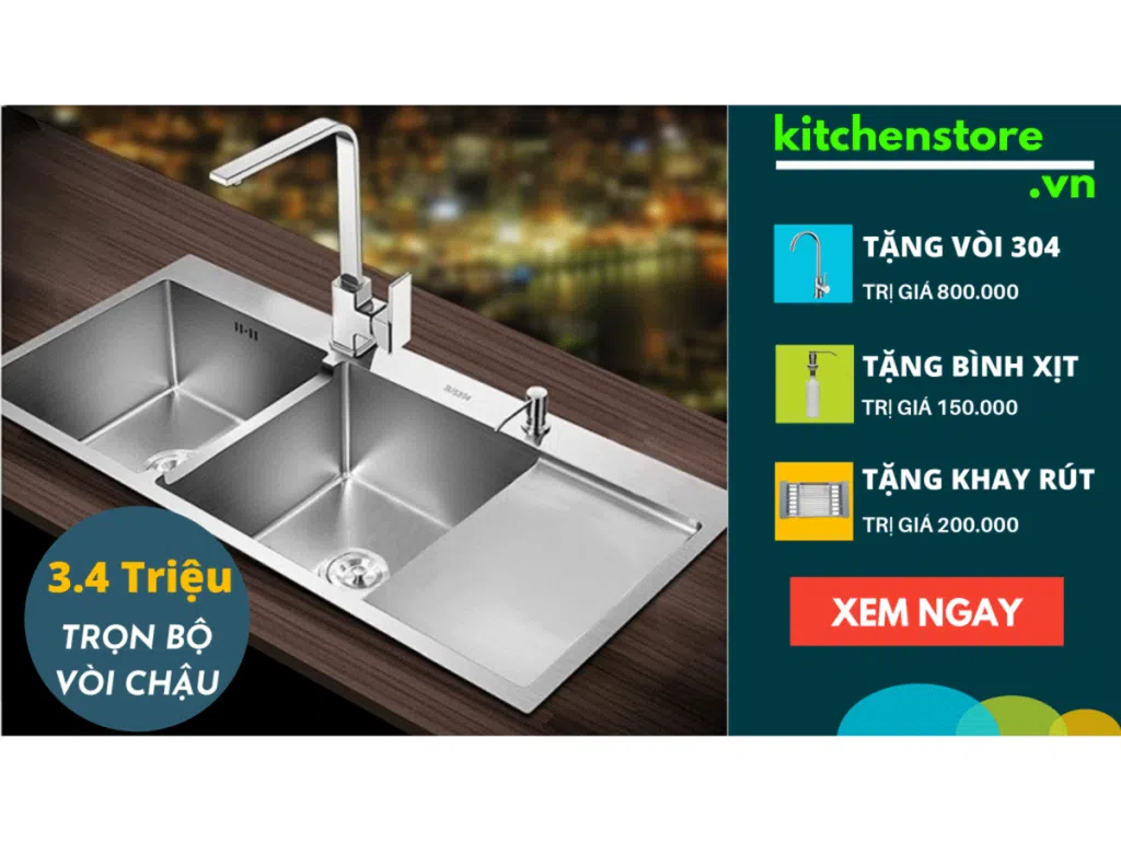 Để giúp khách hàng dễ dàng trong khâu lựa chọn sản phẩm. Kitchen Store đã đánh kỹ càng chất lượng từng sản phẩm và triển khai trương trình 3.40 triệu Trọn bộ Vòi Chậu Rửa Chén Inox 304 (Sale off đến 46%). Bây giờ hãy cùng Kitchen Store xem chi tiết từng sản phẩm của Combo vòi chậu này nhé.