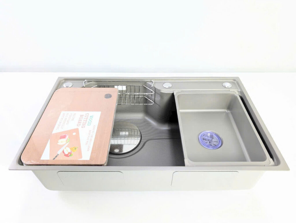 - Có 3 lỗ vòi (vòi rửa bát, vòi lọc nước, bình xà phòng) chờ lắp đặt