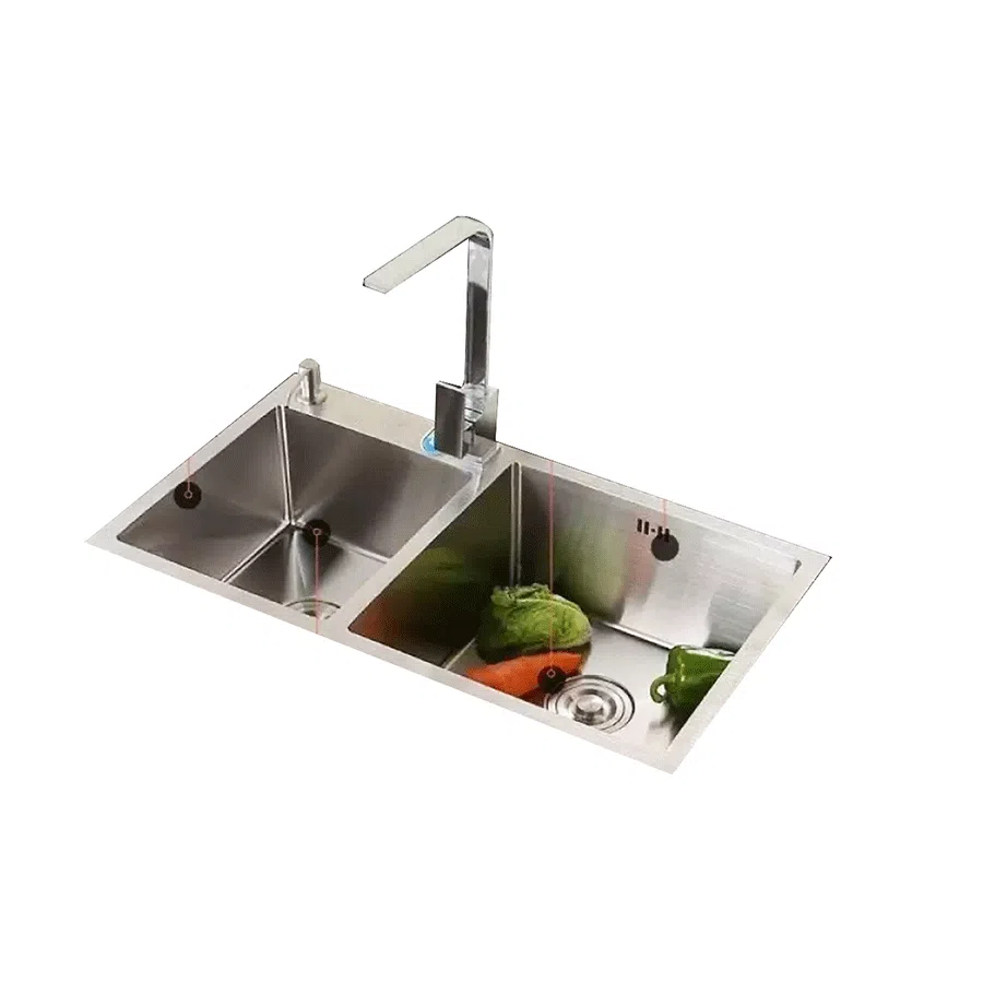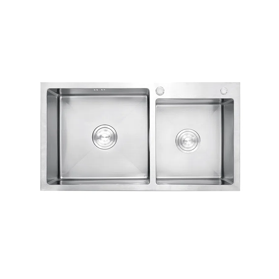 Chậu có kích thước 820 x 450mm, chiều sâu lòng chậu 230mm, độ dày thành chậu 3,5mm. Thiết kế 02 hộc rộng rãi dễ dàng sử dụng. Đáy chậu còn thiết kế tránh ngưng tụ nước, không đọng nước giúp thoải mái trong công tác dọn rửa.