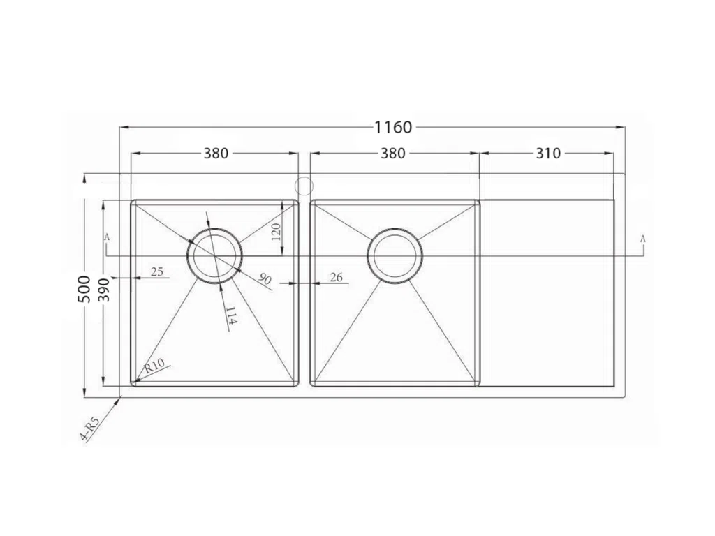 Hình ảnh kỹ thuật chi tiết của sản phẩm chậu inox304 Carysil VN-D200