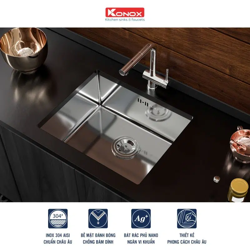 Model KN5444SU – Với thiết kế chậu đơn hố nhỏ – Đây là sản phẩm phù hợp nhất cho tủ bếp tại bàn đảo, quầy bar hoặc gian bếp có diện tích bàn bếp hạn chế.
