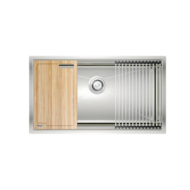 Model KN8046SU – sản phẩm chậu rửa bát được Konox phát triển theo phong cách bồn rửa đơn hố, lắp đặt âm bàn đang là xu hướng. Chậu rửa KN8046SU dẫn đầu xu hướng với thiết kế hố chậu rộng rãi, lòng chậu sâu cùng phụ kiện tích hợp công năng. Chậu rửa bát KN8046SU thuộc dòng Workstation – Undermount Series – bộ sản phẩm tối ưu cho phong cách lắp âm đang là xu hướng bởi thẩm mỹ tối giản và dễ dàng vệ sinh.