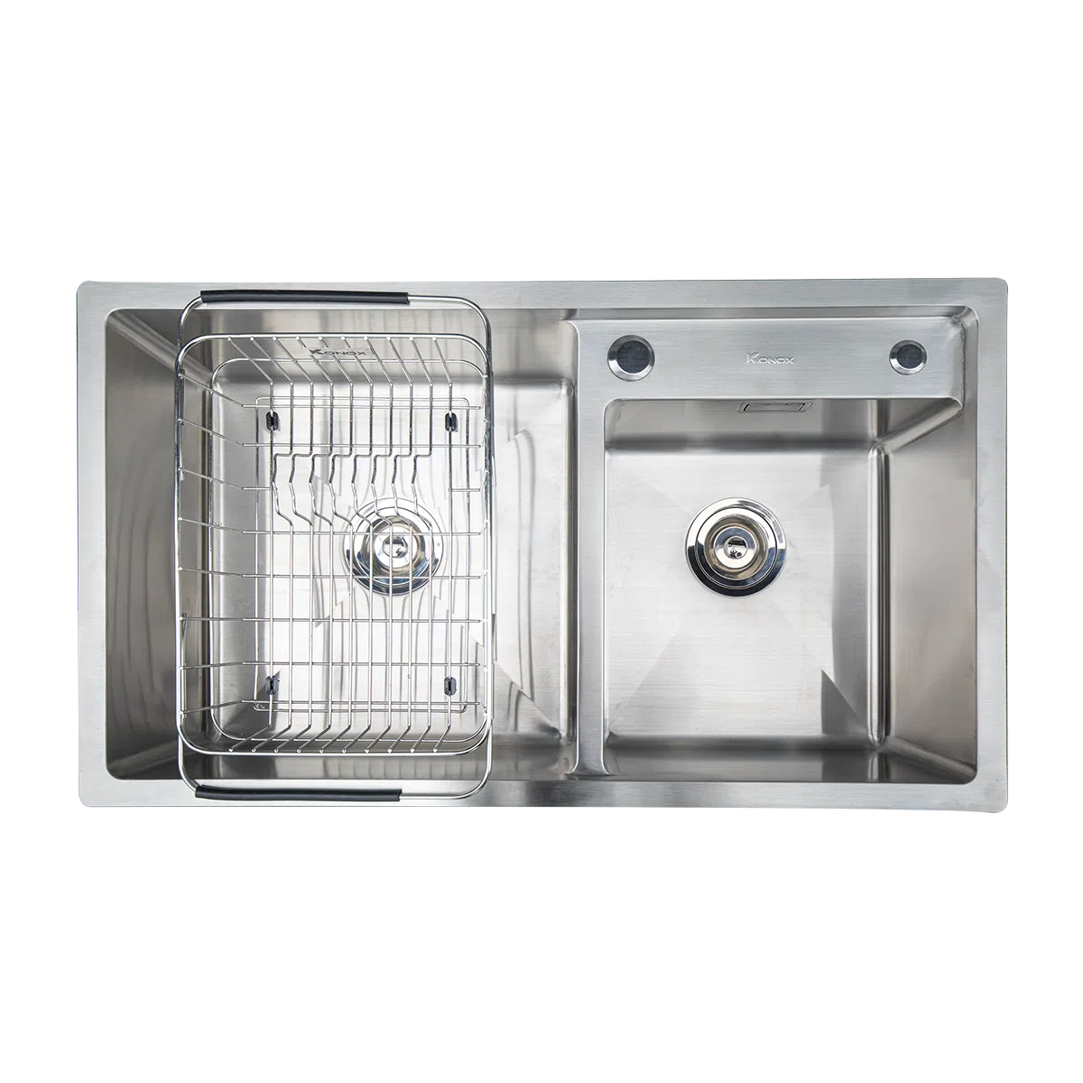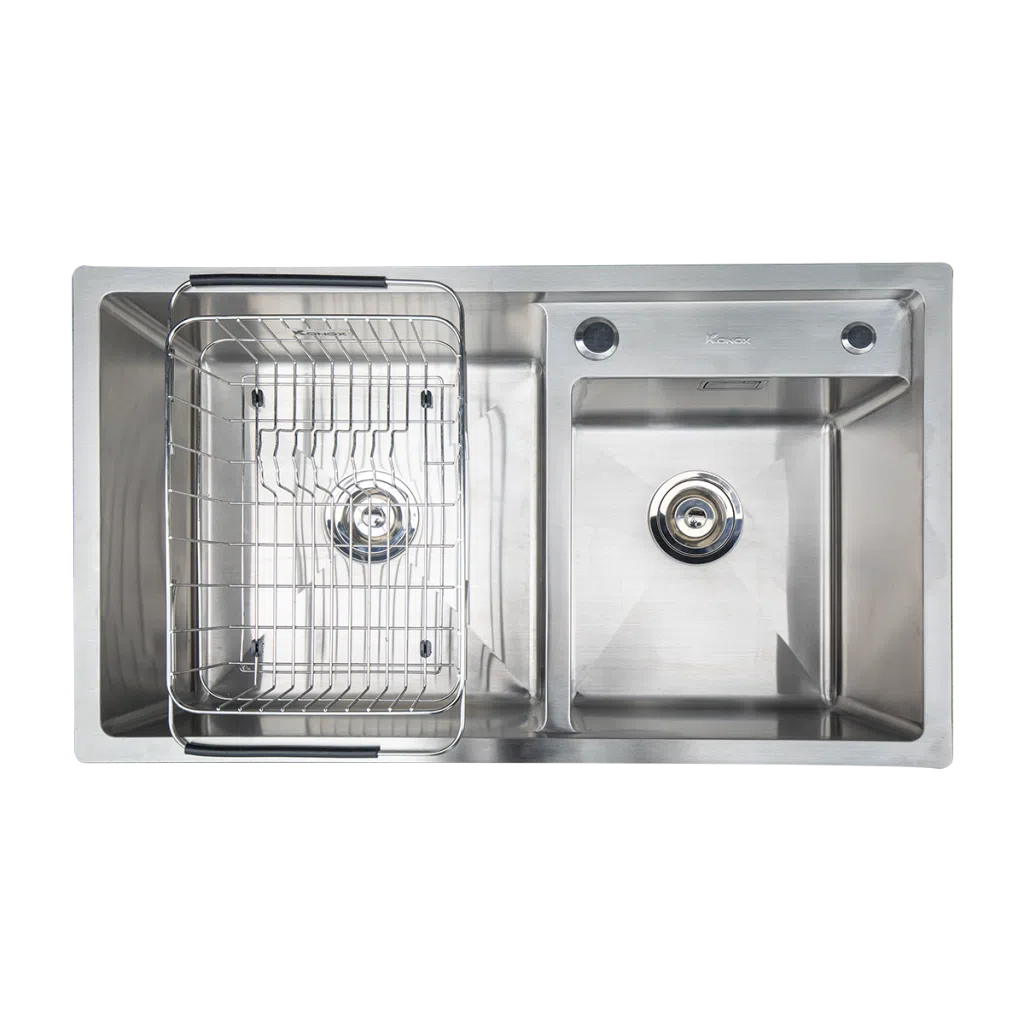 Sản phẩm thiết kế sâu lòng, nười dùng linh hoạt trong việc lựa chọn hố chậu theo nhu cầu sử dụng, giúp tiết kiệm nước với thiết kế 2 hố chậu lệch.
