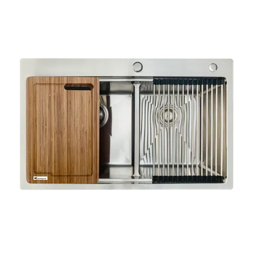 - Dòng chậu hạ bậc – tích hợp công năng: thớt gỗ, rollmat